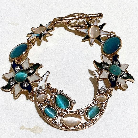 Celestial Moon Sun Stars Cats Eyes Bracelet Toggle Clasp Women's Fashion Jewelry