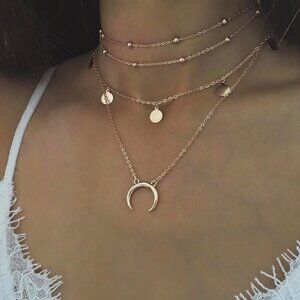 Add some personality to your everyday looks with this super cute multi-layer crescent moon necklace ✨This trendy gold choker necklace mixes minimalistic chain chokers with layered moon and circle pendants. Adjustable closure in the back. Revel in your feminine side with this super boho multi-layered gold chain moon necklace 🌙