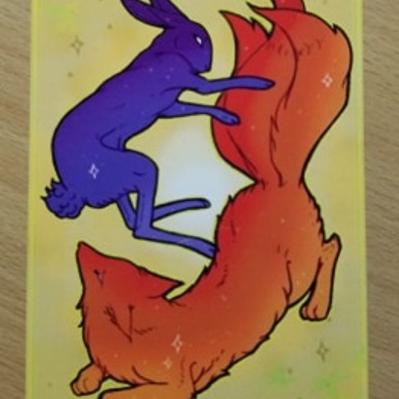 This beautiful celestial rabbit and fox print by SlyBonsai is 4"x6"!