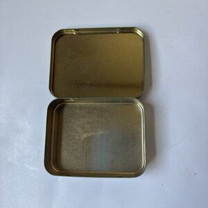 This tin is empty and has no major dents or scratches.there is a tiny scratch on back of tin