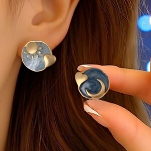 Vintage-inspired earrings, minimalist earrings, asymmetric earrings, sun and moon jewelry, celestial earrings, enamel earrings, 925 silver posts, hypoallergenic earrings, alloy earrings, everyday earrings, small stud earrings, dainty earrings, trendy earrings, celestial jewelry, boho earrings, unique earrings, cute earrings, sun motif jewelry, moon motif jewelry, enamel studs, gold tone earrings, gift for her, celestial fashion, fashion jewelry, cosmic earrings, vintage style jewelry, trendy accessories, statement earrings, silver post earrings, delicate earrings, handmade earrings, lightweight earrings, casual earrings, art deco earrings, retro jewelry, celestial aesthetic, sun and moon