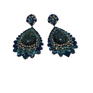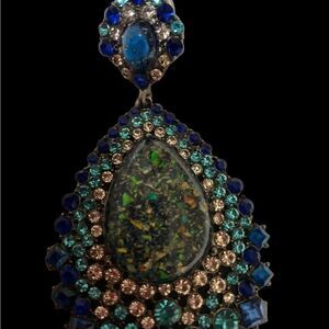 Celestial bliss, Aurora, whatever you want to call these, I call them Heaven as the depth is like blankets of colored stars in the night sky surrounded by layers of beautiful crystals in hues of blue and clear sparkling like surrounding stars. These pierced earrings are dreamy. Approx 2.5in L AND 1.5 W. These earrings will having you gazing as you don’t always see things like these.