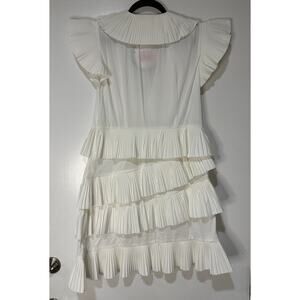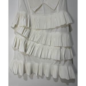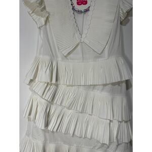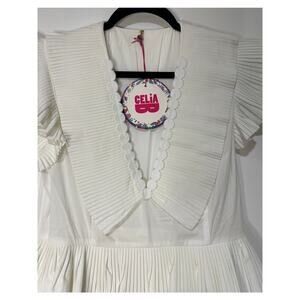Celia B Bjorn Dress White Crisp Cotton Size Large NWT Pleated Ruffled Trim