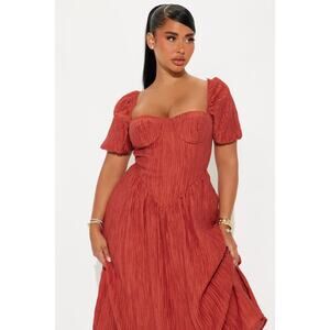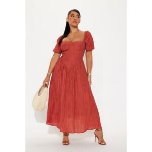 Celia B Corset Textured Midi Dress - 2x - Rust