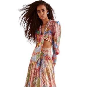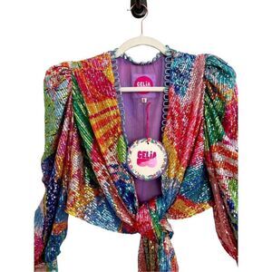 Celia B Fuji Tie Front Sequined Crop Top Multicolor Women’s Size Small