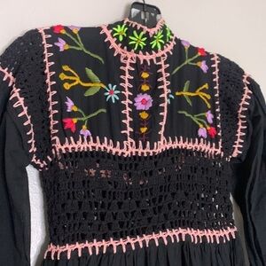 Celia B crochet SCARLETT long sleeve embroidered mini DRESS XS black new