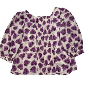 Celia Birtwell for Next Cream Pink/Purple Floral Heart Print Peasant Top Blouse Size 22