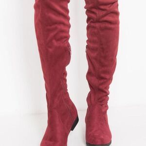 Celia Wine Unique Tall Suede Stretch Knee Boot Size 6.5 New.