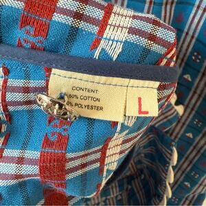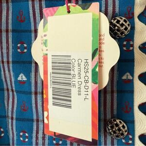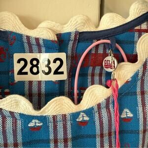 Its tailored silhouette features puffed sleeves, contrast trim, and a flattering high neckline. The cobalt blue plaid gets a playful lift from scalloped edges and a bold back button closure, equal parts classic and cool.