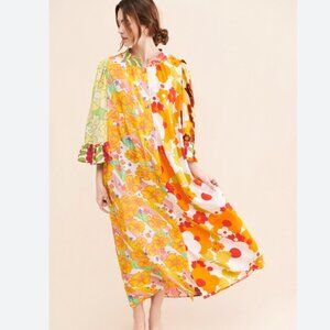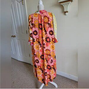 CeliaB Colorful Titanite Printed Oversized Midi Caftan Dress Shirt size XS