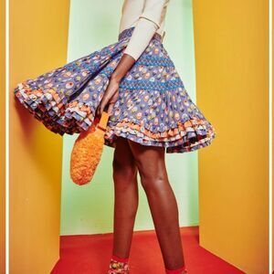CeliaB Manatier Ruffled Tiered Embroidered Full Mini Skirt Large Multi Color