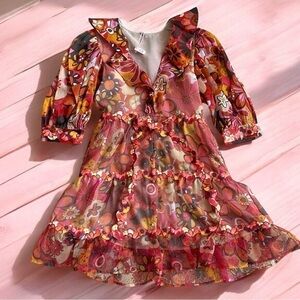 Colorful retro 70s groovy flowers vacation festival wedding guest party spring summer shopbop Celia B Halloween hippie cottagecore prairie 60s mod