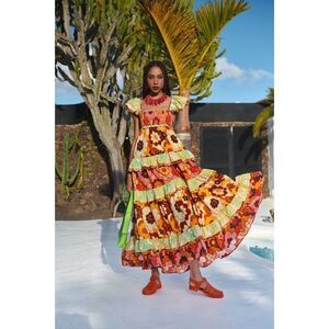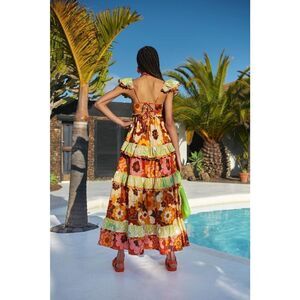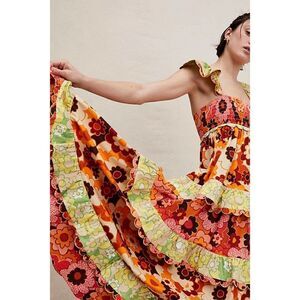 So fun and flirty in a femme design, this floral-printed maxi dress features ruffle-adorned shoulder straps, tiered detailing at skirt, and scalloped hems throughput for an added sweet touch.