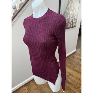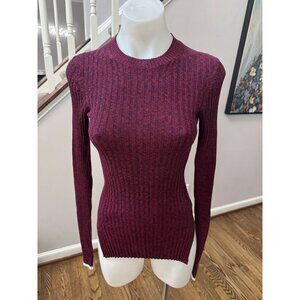 Celiné Ribbed Cotton Long Sleeve Sweater Top Burgundy Navy Red Marled Size Small