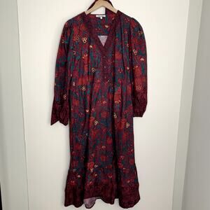 Celina Moon Myrna Merlot Long Sleeve Floral Maxi Dress Womens Large
