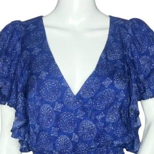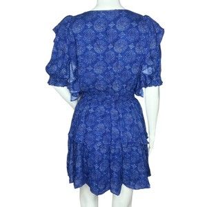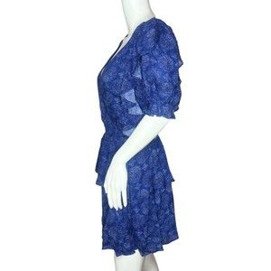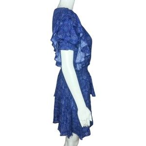 Celina Moon Women's Mini Dress Tiered Ruffle Blue Indigo Block Size Small
