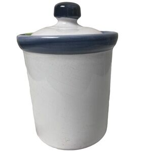 Gorgeous hand painted canister. Made in Portugal and signed by Celina. Terracotta with a lovely glaze. The base is white with a hand painted grape and floral pattern.