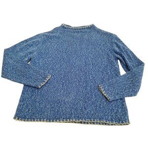 Celina Yang Designs Sweater W/ Leaf Motif Womens Large Blue Patchwork Style