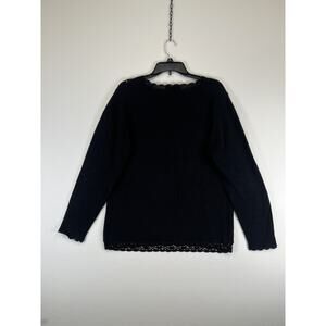 Celina Yang Designs Sweater Womens Medium Black Floral Embroidered Knit Pullover