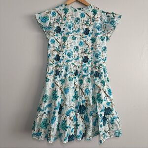 Celina Moon Flutter Sleeve Dress Blue Floral Size M New With Tags Retail: $230