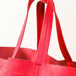 Condition: Great; supple leather, visible rubbing at bottom corners and along bottom seams; light residue and marking from wear on body and on bottom interior