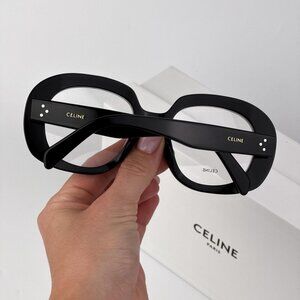 Delicate curves meet bold Parisian style in the Celine 3 DOTS CL50162I eyeglasses — a fresh release for Summer 2025. This women’s model (CL50162I, color code 001) features a full-rim oval frame in shiny black acetate, offering a refined yet modern silhouette that flatters a variety of face shapes.