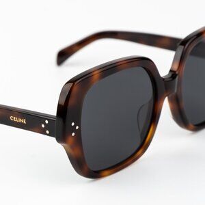 Celine 3 DOTS Women Sunglasses Shiny Medium Havana Smoke Grey Geometric CL40241F 53A BRAND NEW