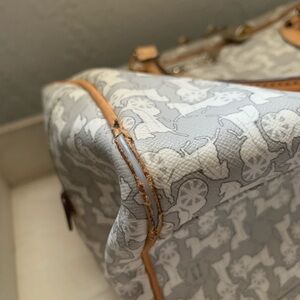There is darkening at handles, balding on piping at corners, yellowing at zipper and inside seams. Comes with all original accessories lock, keys, luggage tag, and horse carriage hangtag. Comes with the RealReal dust bag