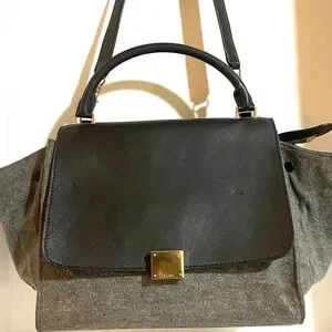Celine tricolor trapeze handbag leather & felt with gold tone hardware main compartment 2 open pockets at interior wall leather lining exterior have stains discoloration creasing hight 9” width 11.5” depth 5.5” strap drop 4” shoulder strap 15” The dimensions are based on approximately measurements before placing an order please check take a moment to view all photos using feature for a closer look