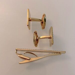 Celine 925 Silver Cuff Links + Tie Clip Set