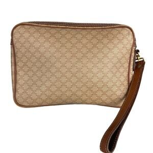 Celine Authentic Macadam PVC Leather Monogram Clutch Purse Makeup Bag Designer