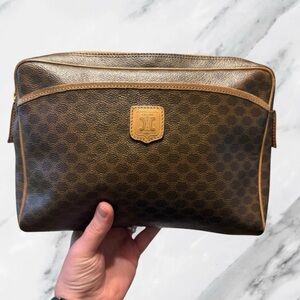 Celine Authentic Macadam PVS Leather Coated Clutch Pouch Bag