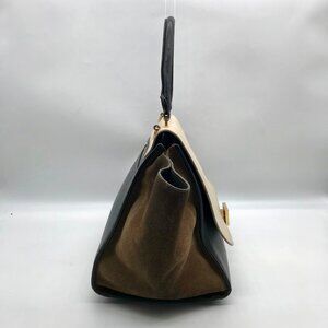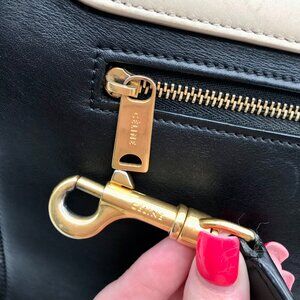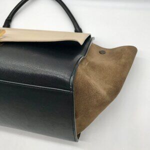 Celine Beige & Black Calfskin Trapeze Convertible Satchel