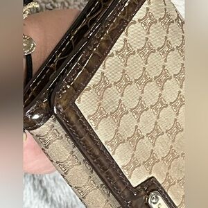 Beige Macadam Canvas with brownCroc Embossed Leather trim French Wallet.