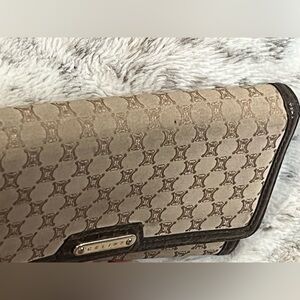Celine Beige Macadam Canvas w/ Croc Embossed Leather French long Wallet-rare