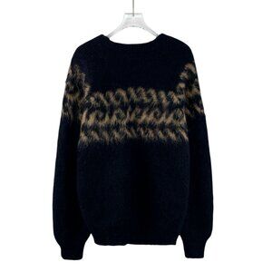 Celine Black Alpaca Wool Long-Sleeved Knitted Sweater With Animal Print Detail S