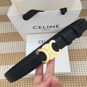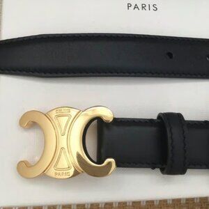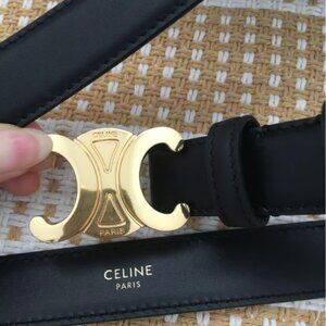 Elegant Celine belt in black with a striking gold buckle. Perfect for adding a touch of luxury to any outfit.