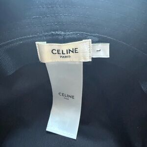 Stylish black bucket hat with Celine logo. Perfect for casual wear. Size large.