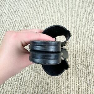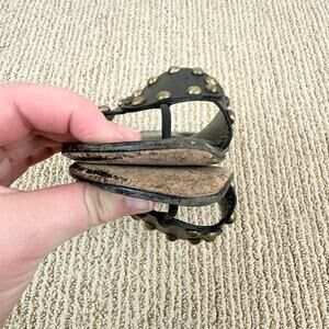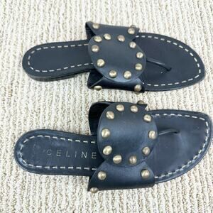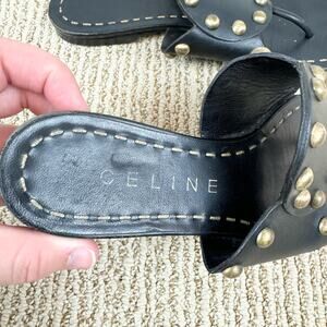 Celine Black Gold Studded Medallion Flat Leather Sandals