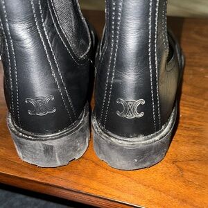 Step out in style with these sleek black leather Chelsea boots from Celine. Perfect for any occasion, these boots offer both comfort and elegance.