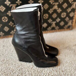 Celine Black Leather Front Center Zip Ankle Boots Booties