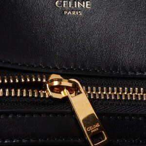 This minimalist and lightweight tote from the house of Celine is an instant classic. This shopper tote features classic smooth leather and cotton canvas with Celine stamped logo at the center. The bag has a spacious interior and a single zip pocket makes this bag ideal for travel or all day use.