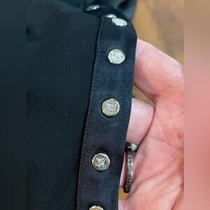 Celine Black Sleeveless Midi Dress with Silver Triomphe Button Detail SZ 44