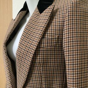 Celine Black and Brown Houndstooth Wool Blazer Sz 34