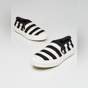 Celine Black/White Striped Canvas Slip On Sneakers