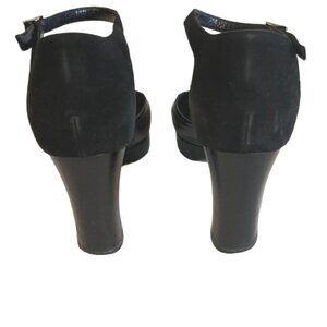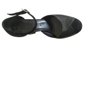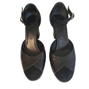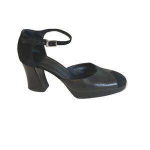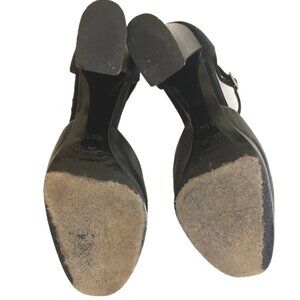 Celine Blk Leather/Suede Mary Jane’s Round Toe Chunky Heels Gold Buckle Size 37