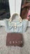 Stylish Celine satchel in blue and cream. Features signature pattern and sturdy handles. Perfect for daily use.