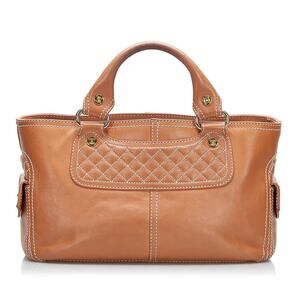 Celine Boogie Bag Tan Brown Quilted Calfskin Top Handle Gold HW Satchel Handbag