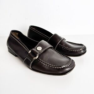 Celine Brown Leather Contrast Stitching Loafer size 35.5 C