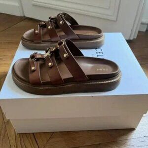 Celine Brown Leather Sandals with Gold Accents